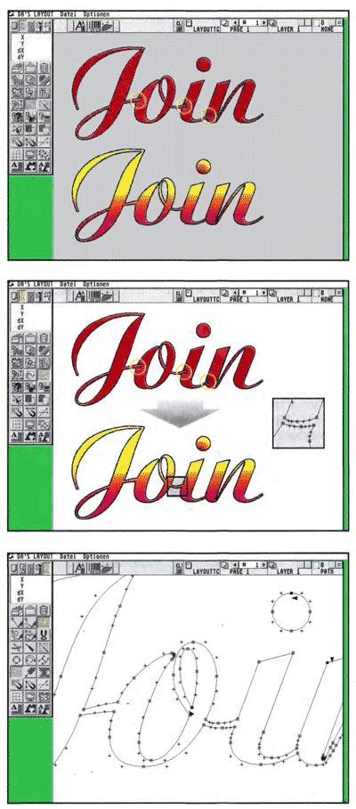 Neben CALAMUS existiert mit DA'S LAYOUT eine zweite Familie von DTP-Programmen, die inzwischen auf eine lange, wechselseitige Entwicklungsgeschichte zurückblicken kann. Seine Herkunft aus einem reinen Font- und Vektoreditor (DIDOT, DIDOT LineArt) hat DA's Layout dabei nie verleugnet, im Gegenteil. Manche Probleme des Vorgängers „DIDOT Professional" sind erst aus dieser Vergangenheit heraus zu verstehen.