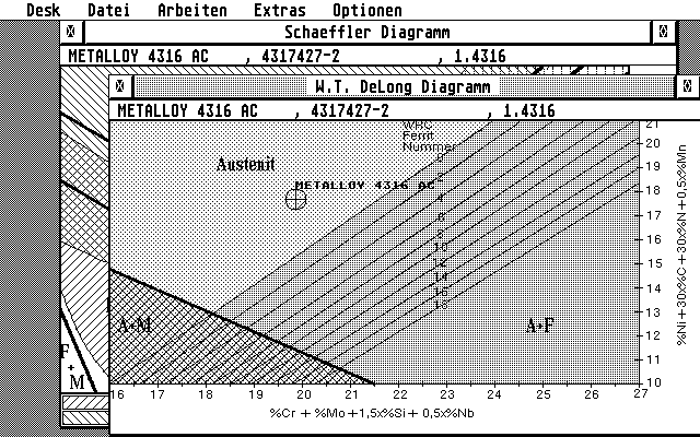 Für Maschinenbauer, die sich mit Werkstoffkunde herumschlagen müssen, oder für Hersteller von hochlegierten Schweißzusatzwerkstoffen ist das Programmpaket Metalloy gedacht. Zusätzlich kann es zur Gefügebestimmung benutzt werden. Weitere Funktionen des Programms sind die Qualitätsbestimmung einzelner Legierungen durch Vergleichtests und Gefügebestimmung beim Schweißen unterschiedlicher Stahle. Somit eignet sich Metalloy vielleicht auch für den Schlossereibetrieb, da hiermit schon die brenzligen Stellen beim Schweißen vorher beachtet werden können. Ist die Naht erst gezogen und es treten Probleme auf, ist es sowieso fast zu spät. Es sei denn, man läßt die Rex sprechen.