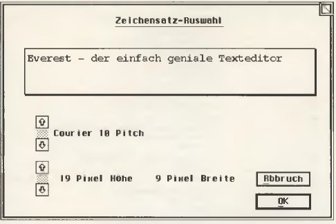 Obwohl eine grafische Benutzeroberfläche auf eine Maus (alternativ Trackball oder Zeichentablett) angewiesen ist, wird jeder zustimmen, daß in einer Textverarbeitung oder einem Editor dies fast hinderlich ist. Insofern legt man gesteigerten Wert auf Tastaturbedienbarkeit. Die Tastaturkommandos sind kompatibel zum TurboC-Editor. Das bedeutet die Unterstützung von Cut/ Copy/Paste und die gängigen Kommandos zum Speichern und Laden. Die Kommandos sind jedoch nicht veränderbar. Für Freaks gibt es aber die Möglichkeit, per Monitor die Einträge zu verändern. Viele Funktionen und Einstellungen von Everest finden in Dialogboxen statt. Diese sind weitestgehend auch per Tastatur bedienbar. Warum aber statt der Dialoge keine Fenster verwendet wurden, bleibt offen. Vielleicht ist dies der Kompromiß zu älteren TOS-Version, die maximal 7 Fenster erlauben. Diese Anzahl kann jedoch mit der Systemerweiterung von Martin Osieka, Winx (PD-Diskette 542), locker erhöht werden. Da Everest bis zu zehn Texte gleichzeitig bearbeiten kann, würde sich die Installation schon lohnen.