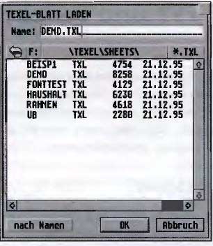 Auch wenn sich in puncto Funktionalität nichts geändert hat, so präsentiert sich die Dateiauswahlbox (File-Selektor) in MagiC!4 in völlig neuem Design. Mit dem geänderten Aussehen sind auch etwas modernere Bedienelemente in die Box eingezogen. So lassen sich beispielsweise die Laufwerke nicht mehr über Knöpfe, sondern über ein Pop-up auswählen. Die meisten Möglichkeiten der Box lassen sich auch über die Tastatur ansteuern, was gerade dem Vielschreiber die Möglichkeit gibt, die Finger auf der Tastatur zu lassen, wenn er nur mal eben eine Datei laden möchte.