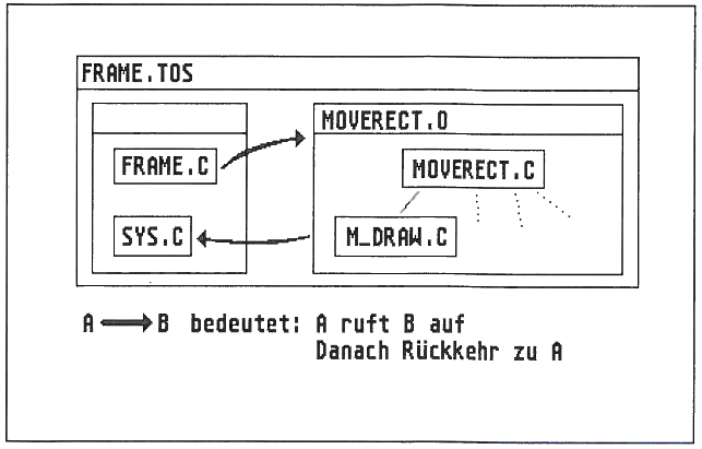 Falls Sie die Listings abtippen sollten und noch Einsteiger sind, hier noch ein paar Worte zum konkreten Vorgehen: Sichern Sie die Quellcodes unter den Namen wie angegeben. Compilieren und linken Sie dann das Projekt MOVERECT. Evtl, mĂŒssen Sie in der Projektdatei den Destination-Pfad an Ihre Konfiguration anpassen. Sorgen Sie dafĂŒr, daĂ das Ergebnis des Linkvorgangs in den Ordner der Bibliotheken (meist LIB) geschrieben wird, und kopieren Sie den Header MOVERECT.H in den Ordner der Header (meist INCLUDE). Compilieren und linken Sie nun das Projekt FRAME und es mĂŒĂte ein lauffĂ€higes FRAME.TOS entstehen.