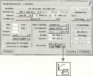 Die Farbseparation läßt sich, ebenso wie die Ausgabeliniarität, die nur dort aufgerufen werden kann, im Drucken-Dialog ansprechen. Voraussetzung ist hierbei (wie immer im Calamus) daß die entsprechenden Module auch geladen sind.