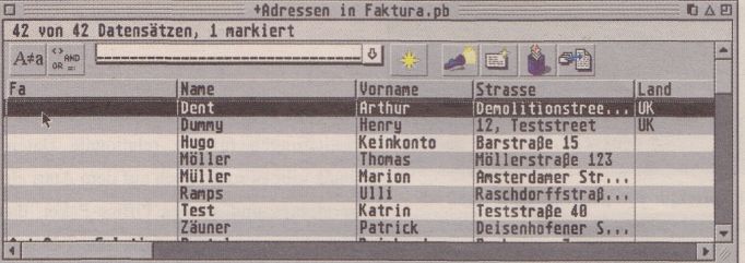 papyrus BASE, der Datenbank-Teil von papyrus OFFICE, bietet jetzt auch relationale Verknüpfungen, mittels derer man Daten aus einer Datenbank-Tabelle in eine andere Tabelle einfließen lassen kann. Als Beispieldatenbank zur Veranschaulichung dieser neuen Funktionen liefert R.O.M. gleich eine komplette Faktura mit: So wird in einer Rechnungs-Tabelle das Schreiben einer Rechnung weitestgehend vollautomatisch ermöglicht; die Kunden-spezifischen Daten werden nach Angabe eines beliebigen Kriteriums wie dem Namen in die Rechnung eingetragen; aber auch die Straße oder Postleitzahl kann in ein beliebiges verknüpftes Feld eingetragen werden, ganz so, wie man einen Datensatz auch in der Adreßtabelle sucht.