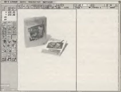 Die verschiedenen Funktionen sind ähnlich wie bei Calamus in verschiedenen Werkzeugboxen untergebracht, die in die zentralen Bereiche Montage, Seitenverwaltung, Mengensatz, Bilder und Vektorzeichnen aufgeteilt sind. Diese logische Gliederung begrenzt die Verschachtelungstiefe auf anwenderfreundliche zwei Ebenen, was eine generelle Übersichtlichkeit garantiert. Die Standard- bzw. Zusatzmodule sind im Kopfbalken des Arbeitsfensters untergebracht, auch hier dürfen also Parallelen zu Calamus gezogen werden.