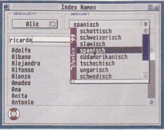 Nach dem Programmstart wird ein einem übersichtlichen GEM-Fenster der Namensindex dargestellt. Über zwei Popup-Menüs kann der Anwender nun entscheiden, ob die Namen abhängig vom Geschlecht und/oder der Herkunft dargestellt werden. Bei der Herkunft sind immerhin 26 Optionen abrufbar (u.a. alpenländisch, schottisch, südamerikanisch ... ). Nun können die Namen entweder mit Hilfe eines Scrollbalkens durchgesehen oder mit der Suchfunktion gezielt angesprungen werden. Auf schnellen Rechnern wird das Ergebnis schon bei der Eingabe des Namens angezeigt. Ist ein Name gefunden, so können per Doppelklick auf den Eintrag die dazu gespeicherten Informationen abgerufen werden. Diese werden in einem eigenen und wiederum übersichtlichen Fenster dargestellt. Wichtigster Punkt ist sicher die Erklärung zu dem Namen. Gleich darunter wird die Herkunft aufgezeigt, gefolgt von einigen Varianten. Sofern die Informationen dazu erhältlich sind, werden außerdem der Namenstag und das Sternzeichen angegeben. Als kleiner "Gimmick" informiert das Programm sogar über einige prominente Namensträger. Sehr hilfreich sind auch die Piktogramme, die am unteren Rand des Datenbank-Fensters angezeigt werden: Mit diesen wechselt man wieder ins Suchfenster, druckt die Informationen aus oder überträgt sie für eine Weiterverarbeitung in einem anderen Programm ins Klemmbrett.