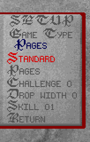 Neben den Spielmodi stehen noch die beiden Optionen "Drop width" und "Skill" zur Verfügung. Wird "Drop width" auf einen höheren Wert gesetzt, fallen die Buchstaben an verschiedenen Stellen herunter. Ob dies nun das Spiel schwieriger oder leichter macht, muß jeder für sich selber herausfinden. Mit "Skill" kann hingegen die Schwierigkeit ganz klar nach oben geschraubt werden. Je höher der "Skill"-Level, desto höher ist auch die Geschwindigkeit.