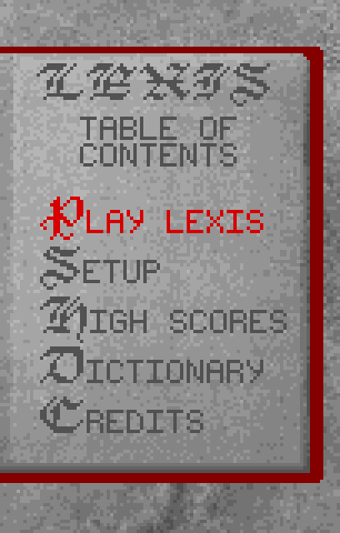 Grafisch schön gemacht sind die Menüs von Lexis: die Option werden wie bei einem Buch umgeblättert, untermalt von einem passendem Sound-Sample. Vereinzelt gibt es auch Sprachausgabe zu hören, das eigentliche Spiel ist hingegen zweckmäßig gestaltet. Die Übersichtlichkeit ist damit gewährleistet. Zu gefallen weiß auch der Highscore-Bildschirm: sind genügend Punkte erzielt, kann man sich in die Liste eintragen - stilecht dient eine Feder als Schreibmittel.