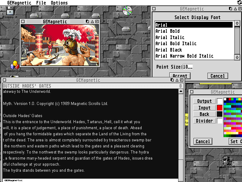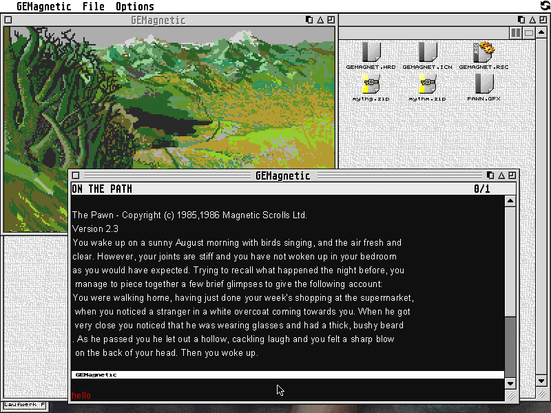 Die Zahl sechs ergibt sich nicht ohne Grund: GEMagnetic ermöglicht es, Adventures der Firma Magnetic Scrolls im GEM-Fenster und unter jeder Auflösung zu spielen. Das Programm ist eine Portierung von Magnetic, einem Open-Source-Programm, und lag laut dem Programmierer Dan Ackerman eine ganze Zeitlang auf Eis. Extra fĂŒr die "Little Big Competition" hat der Programmierer das Programm in einen benutzungsfĂ€higen Zustand gebracht.