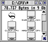Interessanter ist die zweite Registerkarte. Dort offenbart Icon Extract durch die Wahl des Iconformats seine Vielseitigkeit: ICO, CUR, ANI, ICL, DLL, EXE, OCX, XPM. ANI ist das Format der animierten Mauszeiger unter Windows. Diese können zwar in das Atari-Format konvertiert, aber nicht als animierte Mauszeiger angezeigt werden, da das Systeme keine farbigen Mauszeiger unterstützt. ICOs sind einzelne Icons für Windows-Systeme. In einem ICO sind oft mehrere Versionen eines Icons enthalten. CUR sind nicht animierte Mauszeiger. ICL steht für „ICon Library“. In einem ICL sind mehrere Icons zusammengefaßt, ähnlich wie in einer RSC-Datei. Dieses Format ist sehr häufig im Internet anzutreffen, oft auch thematisch vorsortiert. DLL und EXE sind Programmbibliotheken bzw. die Programme selber. Beide Typen können Icons enthalten.