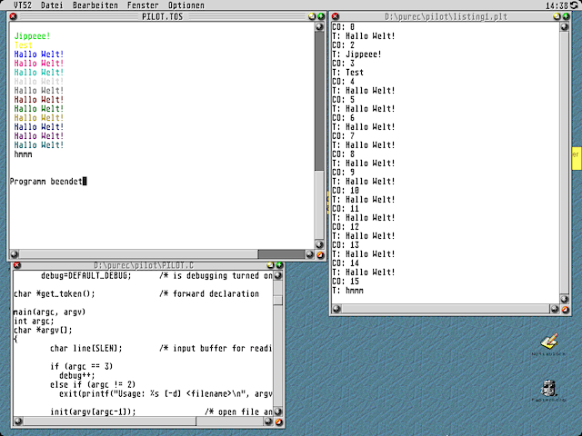 Zur Zukunft von Pilot Atari sei soviel gesagt, das zumindest das "G"-Kommando sicher eingebaut wird. Es ist aber auch gut möglich, das Pilot Atari ganz eingestellt und statt dessen an einer Atari-Version von rpilot gearbeitet wird.