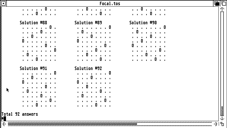 Im Focal-Archiv sind zwei umfangreiche Beispielprogramme, u.a. auch eines, das für das "Acht-Damen-Problem" im Schach Lösungen erstellt.