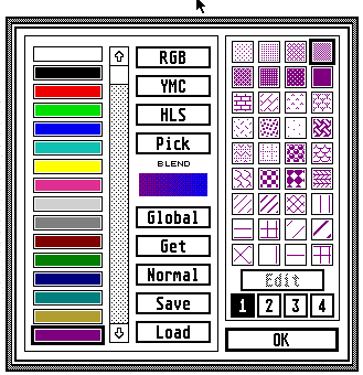 Die Zeichenfunktionen bieten all das, was auch heute noch von einem Malprogramm erwartet wird. Neben dem Stift gibt es einen Radier mit frei wählbarer, rechteckiger Größe, Linien und Linienzüge. Was folgt ist die Kür: rechte Winkel, horizontale Linien oder Parallellinien. Quadrate und Rechtecke werden unterschieden und wer schon immer eine Funktion gesucht hat, um Linien zeichnen zu lassen, die vom linken zum rechten Bildschirmrand gehen, wird sie hier finden. Als nächstes gibt es Kreis, Kreis durch drei Punkte, Rechteck, Dreiecke in drei verschiedenen Geschmacksrichtungen und ein Achteck. Runder wird es mit Bézier- und einfachen Kurven. Der 3D-Teil beschränkt sich hingegen auf das Zeichen von 3D-Rechtecken. Sprühdose und Füllwerkzweug runden die Palette ab.