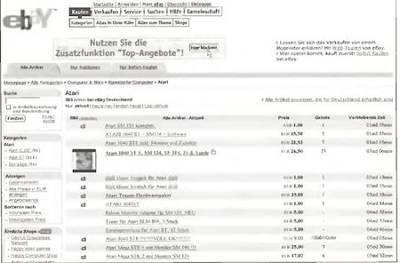 eBay überzeugt unter anderem durch ein riesiges Angebot an Hard- und Software für den Atari.