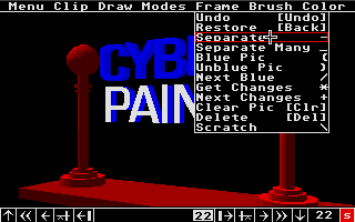 Cyber Paint hat am unteren Bildschirmrand stets eine Steuerleiste, die an einen Videorecorder erinnert. Damit wird zwischen den Bildern gewechselt, oder der Film abgespielt. Ebenfalls vorhanden ist ein Knopf zum Einfügen neuer Bilder.