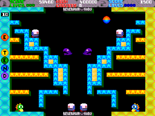 100 unterschiedliche Level müssen bis zum Showdown durchquert werden. In jedem Raum wuseln drei bis zehn Gegner, die bei Feuerknopfdruck in einer Blase gefangen werden, um sie dann per Berührung in leckere Früchte zu verwandeln. Wird ein Gegner in der Blase jedoch nicht rechtzeitig zum Platzen gebracht, öffnet sich die Blase und der Gegner ist doppelt so schnell wie vorher.