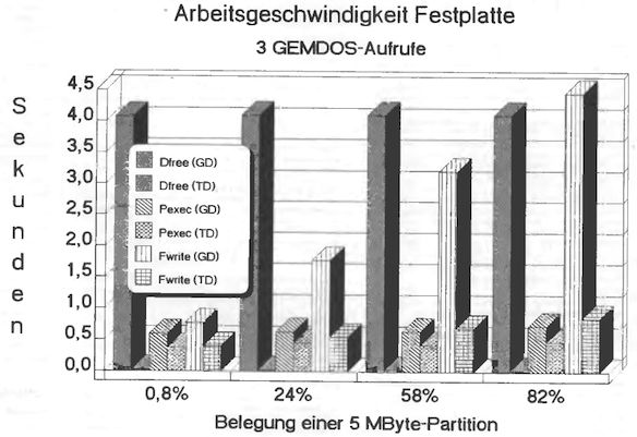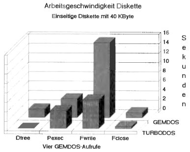 Das Schaubild verdeutlicht es: Tempogewinn bei nahezu allen GEM-DOS-Aufrufen