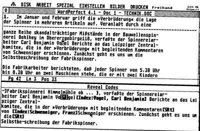 Oben der Text, unten (optional) die Steuerzeichen: So präsentiert sich Wordperfect
