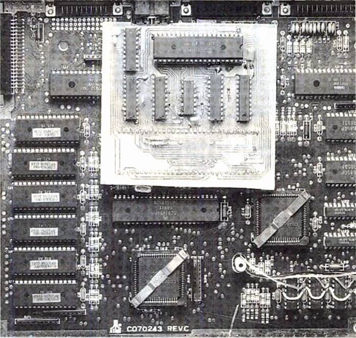 Eins zu Null für den Emulator. Microsoft Word ist die meistverkaufte Textverarbeitung in der MS-DOS-Welt. Allerdings läuft sie auf nahezu jedem Kompatiblen. Nach diesen ersten Kurztests nehmen wir uns die Hardware von PC-Speed unter die Lupe. Die obere Gehäusehälfte klappt nach oben und wir trauen unseren Augen nicht. Wir erblickten eine unscheinbare Platine, die huckepack auf dem MC 68000 steckt. Bei der Leiterplatte handelte es sich noch um eine sauber verarbeitete Entwicklungsplatine. Auf ihr befinden sich neben einem NEC V30-Prozessor noch sechs PALs, die die Logik des Emulators enthalten. PC-Speed nutzt die komplette Hardware des ST und erreicht dadurch diese verblüffend kleinen Ausmaße. Hans-Jörg Sack verzichtete beispielsweise ganz auf teueres eigenes RAM für seinen Emulator, der überdies mit dem ST-RAM auch noch äußerst genügsam umgeht. Bei einem ST mit 1 MByte Arbeitsspeicher meldet das Programm »SI« von Peter Norton 704 KByte freien DOS-Arbeitsspeicher und 64 KByte EMS-Speicher. Doch es kommt noch besser: PC-Speed läuft sogar auf einem 512 KByte-ST ohne Betriebssystem-ROMs.