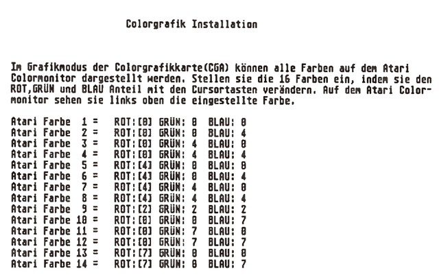 In diesem PCS-INST-Menü stellen Sie die Farben der CGA-Grafik ein