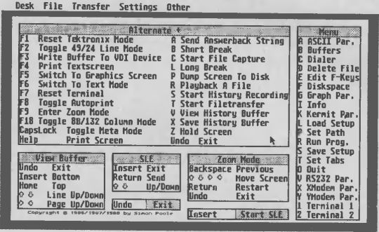 Uniterm: Das absolute Muß für jeden DFU-Interessierten. Vollkommen mausgesteuert über Pop-Up- und Pull-Down-Menüs; Makrodefinition erlaubt; sämtliche RS232-Parameter leicht zu verändern; History Buffer; Clipboard; Dialer; Emulation verschiedener Terminalstandards; diverse Übertragungsprotokolle; etc.