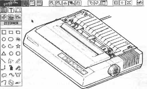 Auch aus der Ausstattung, mit welcher Graffiti zu erwerben sein wird, machte man kein Geheimnis. Neben den zum Hauptprogramm zählenden Treibern für diverse Drucker und Scanner wird sich ein Fonteditor mit einigen Zeichensat-zen, evtl, ein Utility zum Formatieren von Disketten sowie mehrere Modul-Programme im Lieferumfang befinden. Für dieses Paket sollen etwa 400 Mark zu bezahlen sein.