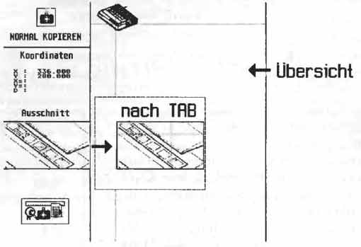 Bild 2. Zeichnen auf der Übersicht — im Kasten in Bildmitte der links gezeigte Ausschnitt nach Betätigen der TAB-Taste.