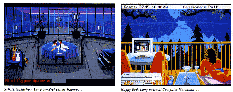 Wer den »American Way of Life« ein wenig kennt, wird auch mit der dritten Folge des Larry-Epos seine helle Freude haben. Das Programm enthält zahlreiche liebevoll animierte »Film«-Passagen, in denen man sich zurücklehnen und genießen kann. Eingebaute Geschicklichkeits-Übungen und Arcade-Einlagen runden das Vergnügen ab. Wie bei so vielen erfolgreichen Sierra-Spielen merkt man eben, daß die Autoren nicht einfach ein neues Produkt lieblos auf den Markt geschaufelt haben, sondern selbst Spaß am Tüfteln hatten. Welcher Programmierer-Schelm würde sich wohl als Toiletten-Spanner ins eigene Spiel einbauen, wenn nicht Al Lowe? Und wenn einem an der Piano-Bar im Casino-Hotel Elvis the King den Rücken zudreht, dann ist das fast so schön wie ein Woody-Allen-Film. (hu)