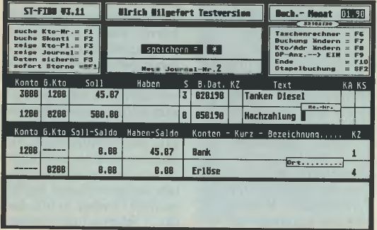 Das Kernmodul heißt »ST-Fibu«: Grundlage eines jeden Geschäfts ist nun mal eine ordentliche Buchhaltung. Sie spiegelt die finanziellen Verhältnisse wider, gibt Auskunft über Soll und Haben und verrät, wie die Gewinnsituation zu beurteilen ist. Klare Sache, daß eine solche Mischung aus Datenbank- und Kalkulationsaufgaben besondere Anforderungen speziell im Bereich von Eingabe und Verwaltung der zahllosen Einzeldaten stellt.