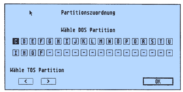 Gleichzeitig ist die Partitionszuordnung bei der Vortex-Software aus Sicherheitsgründen wesentlich komplizierter: Durch Zuordnung einzelner Adapteradressen zu DOS-aktiven Partitionen (s. Abb.) wird eine Kollision beispielsweise von Netzwerken und Festplatten vermieden. Bei Fehlbedienung könnte ansonsten das Netzwerk unter DOS wie eine Festplatte angesprochen werden. Für künftige Software-Updates hat Entwickler Reinhardt Michel bereits mehr Bedienungskomfort versprochen.