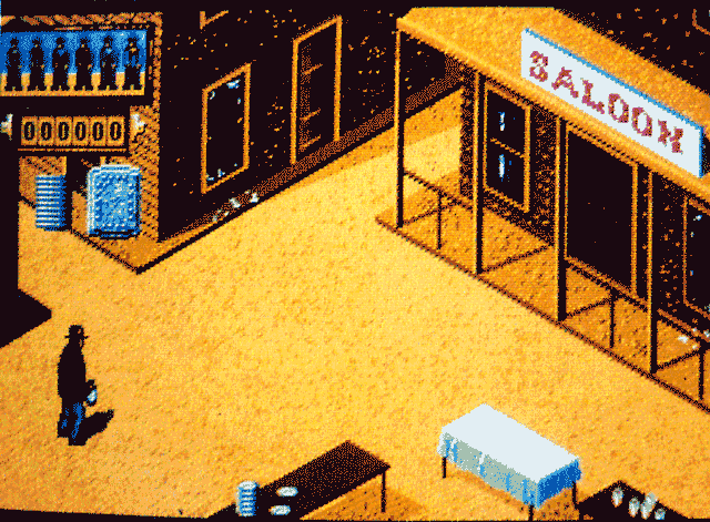 Filmumsetzungen für Computer ähneln sich irgendwie alle: Der Hersteller greift sich ein paar zentrale Szenen aus der Zelluloidvorlage, verpackt sie in Geschicklichkeitsspielideen von der Stange und würzt den faden Eintopf mit Zwischenbildchen und Original-Soundtrack. »Back to the Future III« macht glücklicherweise eine rühmliche Ausnahme. Image Works bietet vier knackige, völlig unterschiedliche Geschicklichkeitsspiele. Im ersten Level galoppiert Doc Brown auf dem Rücken seines Pferdes durch eine horizontal scrol-lende Kaktuslandschaft. Herzdame Clara steuert derweil mitsamt der Postkutsche schnurstracks auf einen Abgrund zu. Nichts wie hinterher, über Stock und Stein. Falls möglich, sollten beide ab und zu ein paar Bonuspunkte für gemeisterte Hindernisse erhäschen. Ist die Angebetete gerettet, versucht Docs Kumpel Marty in der Schießbude sein Glück. Wer flinke Finger beweist, rückt vor ins Showdown mit Bruford Tennens sechsköpfiger Gang. Die Gringos haben sich in den Häusern des Western-Städtchens verschanzt. Marty sieht das Geschehen von schräg oben und wirft mit Tellern nach den Schurken, während er dem Kugelhagel geschickt ausweicht. Am Ende der Zeitreise geht es wieder zurück ins Jahr 1985. Der Zeitmaschine fehlt leider der Treibstoff, also sorgt ein fahrender Güterzug für Energie. Von Waggon zu Waggon arbeitet man sich bis zur Lokomotive vor und donnert sodann ins Hap-py End. Back to the Future III ist zwar kein Reißer, aber ein solides Actionspielchen mit hübschem Banjo-Sound, softem Parallax-Scrolling und einigen unterhaltsamen Ideen.