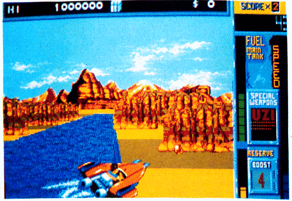 Probleme mit Eilpaketen aller Art? »Hydra« hilft! Hydra transportiert nämlich Waren aller Art, am liebsten Waffen oder frische Gen-Cocktails. Als Beförderungsmittel dient ein schnittiges Rennboot, das mit Kanonen bewaffnet ist. Während der Kurier übers Wasser braust, machen sich Terroristen an der Ladung zu schaffen. Denen ballert man am besten eins vor den Bug, als Belohnung winken ein paar Hunderter. Jede der neun Missionen besteht aus drei Etappen sowie einer Bonusrunde. Zwischen den Aufträgen baut man sein Gefährt im Extra-Shop zur schwimmenden Festung aus. Treibstoff allerdings ist immer knapp. Den muß der wackere Bote während der Fahrt laufend aus Behältern am Flußrand auffrischen. Die Hintergrundstory ist leider das Originellste an diesem ätzenden 3-D-Ballergame aus der Softwaremottenkiste: Die kleinste Joystick-Bewegung und das klobige Boot-Sprite schlingert unkontrollierbar übers Wasser. Gegner werden nicht fließend vergrößert, sondern springen wie aus dem Nichts auf einen zu. Egal, ob Arcade-King oder Dreijähriger: Das Ergebnis der Steuerknüppelqual hängt fast völlig vom Zufall ab. Auch die Möglichkeit, bestimmte Missionen direkt anzuwählen, ändert daran herzlich wenig. Den laienhaften Dudelsound kann man getrost abhaken. Schon in der Spielhalle wollte kaum jemand sein Taschengeld für Hydra verpulvern, die Heimversion hat bestenfalls Sammlerwert. Das drei Jahre alte »Live and Let Die« von Elite bietet ein ähnliches Spielprinzip, kostet weniger als die Hälfte und macht mehr Spaß. (hu)