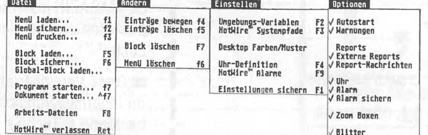 Ausgerechnet die Frankfurter Firma Artifex Software nimmt die Version 3.1 der Alternativoberfläche Hot Wire von Code-Head-Software (»Arcshell«) in ihr Sortiment auf — dabei vertreibt das Artifex-Team eigentlich das langerwartete »Newdesk«, mit TOS-2.06-ROMs für alle STs und offiziell lizenziert von Atari. Warum also Hot Wire? Besitzt diese Oberfläche Features, die Newdesk nicht beherrscht? Die den Kaufpreis von 98 Mark rechtfertigen könnten?