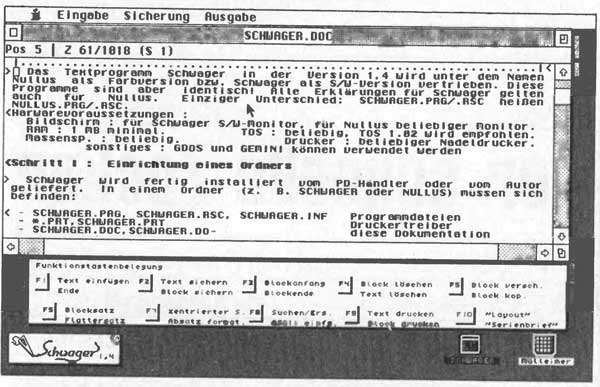 Mit Ausnahme ihrer Vorlieben für Farb- oder Monochrombildschirme ähneln sich beide Programme wie eineiige Zwillinge. Fünf ASCII-Texte -symbolisiert als Desktop-Icons — passen gleichzeitig ins RAM. Gefährlich wird’s bei der sechsten Datei: Da macht GEM einen Strich durch die Rechnung — für die ’ lieben Verwandten »Schwager« und »Nullus« wäre es freilich kein Problem.