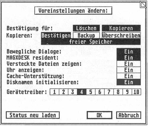 Viele Verbesserungen, die nicht unmittelbar mit Multitasking zu tun haben, jedoch die tägliche Arbeit am Computer angenehmer gestalten, haben die Entwickler eingebaut. Dazu rechnen wir die erweiterten Editierfunktionen in normalen GEM-Dialogboxen. Nun können Sie durch Tastenkombinationen zwischen dem Einfüge-und Uberschreibmodus — ganz wie in Textverarbeitungen — wählen und erhalten Blockfunktionen. Einige Sondertasten lösen die Selektierung zugeordneter Buttons aus, wie »HELP« den Hilfe- bzw. »Help«-Button aktiviert. Die Alertboxen und die Dateiauswahlbox sind auf dem Bildschirm verschiebbar und können per Tastatur bedient werden. Die Größe des Systemzeichensatzes, der z.B. in Menüs, Dialogboxen und Fensterelementen Verwendung findet, ist unter Magix konfigurierbar. So können Sie bei der Angabe einer kleinen Punktgröße in der Info-Datei (ähnlich dem »DESKTOP. INF«) für mehr Informationsgehalt auf dem Bildschirm sorgen.