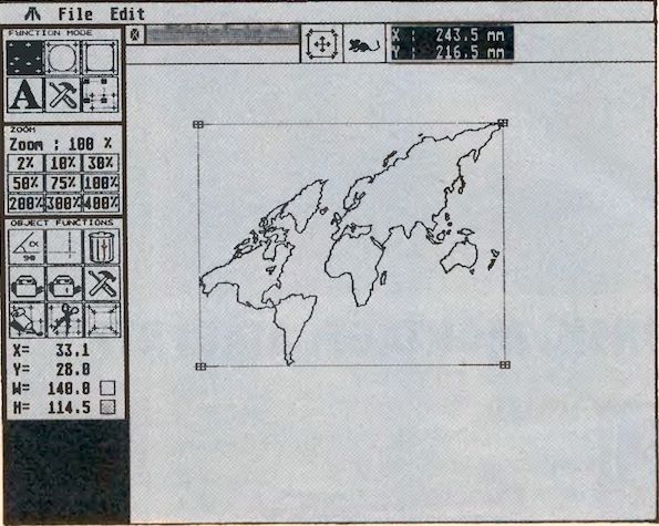 Das Menü wurde vollkommen überarbeitet und verfügt jetzt über eine Menge neuer Funktionen: 36 geometrische Zeichenfunktionen, 20 verfremdende Blockeffekte, 36 Spezialeffekte, 28 Clipboard-Funktionen und eine einfach zu erlernende Grafikprogrammiersprache. Durch eine Modulschnittstelle lassen sich Programmerweiterungen — z.B. Animationsprogramme — integrieren.