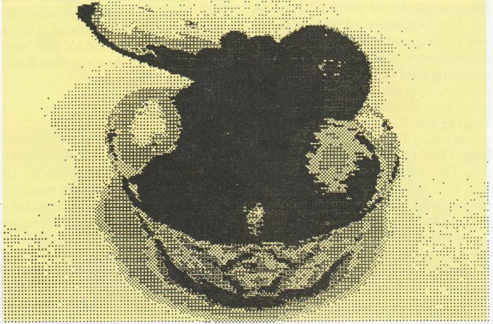 Um Ihnen eine Vorstellung von der Qualität der digitalisierten Bilder zu geben, haben wir als Motiv eine gefüllte Obstschale gewählt. Dieses Bild ist hier einmal als Original abgedruckt. Bei den verschiedenen Geräten ist es dann oft in mehreren Graustufen oder auch in Farbe digitalisiert wiederzufinden.