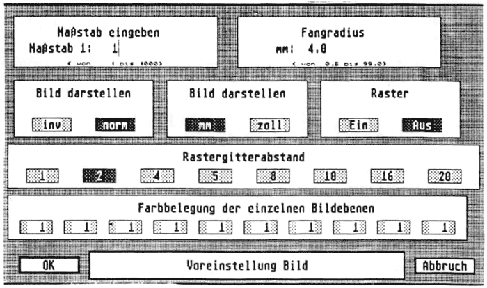 Auch das Arbeiten mit einer sichtbaren Linienbreite ist gewöhnungsbedürftig, weil man nicht die tatsächlichen Breiten kontrollieren kann. Dies ist jedoch die einzige Art, einen schnellen Bildaufbau zu erreichen, denn wenn alle Linien in ihrer tatsächlichen Breite dargestellt würden, dann benötigte GFA DRAFT PLUS dafür eine Ewigkeit. Für den Anwender bedeutet dies ein gutes Gedächtnis für die schon gezeichneten Linien, aber auch für die momentan eingestellte Breite.