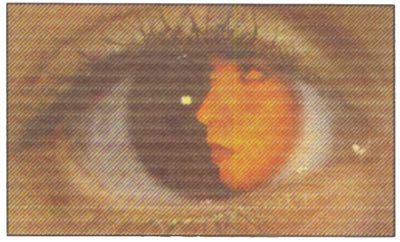 Ein Auge wurde eingescannt und in der rechten Hälfte mit einem farbverfremdeten Gesicht überlagert. Das TmS-Logo wurde mit dem Vektorzeichenprogramm TmS Graphics erzeugt und in Color Express eingeladen.
