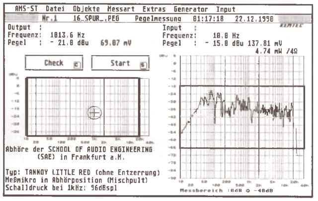 Mit AMS-ST lassen sich Pegel- und Impedanzfrequenzgänge, Hallzeit über Frequenz und die für den Lautsprecherboxenbau benötigten Thiele-Small-Parameter elegant ermitteln. Menüorientiertes Einmessen von 2- oder 3-Kopf-Magnetbandmaschinen oder Kassettengeräten gehört ebenso zum Standard wie die Möglichkeit, alle ermittelten Meßergebnisse komfortabel darstellen und auswerten zu können.