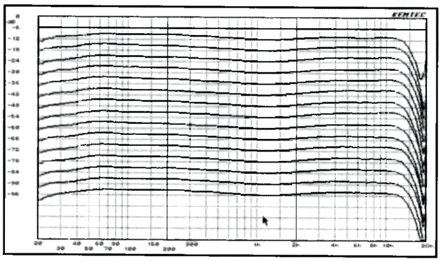 Sehr hilfreich ist die Option, Meßobjekte, die fast alle gleich sind, gespreitzt (Delta- dB-Darstellung) aufzuzeigen. Dies ist besonders wichtig beim Einmessen von Mehrspurbandmaschinen im Tonstudio. Der Service-Techniker hat somit alle 16 Spuren einer Multitrack auf einem „Schrieb“ (Abb. 4).