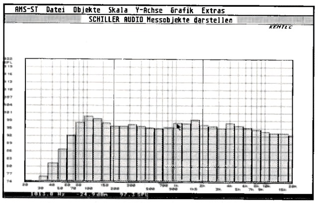 Als externe Einheit wird der KEMTEC- Meßprozessor AMS PC-1656 benötigt. Dieser wird als Tisch- oder 19-Zoll-Gerät über die RS-232-Schnittstelle mit dem ST verbunden. Der Meßprozessor besteht im wesentlichen aus einem steuerbaren Frequenzgenerator (Sinus-Sweep) und einem Millivoltmeter. Dabei kann der Anwender sämtliche Einstellungen des Prozessors vom Rechner aus vornehmen. Als Anschlüsse stehen zwei Line-Ausgänge und ein Leistungsausgang sowie zwei Line- Eingänge und ein symmetrischer Mikrofoneingang zur Verfügung. Ein Monitorausgang ermöglicht den zusätzlichen Anschluß eines Oszilloskopes, um die am Eingang anliegenden Meßsignale über wachen zu können. Der Leistungsausgang bietet maximal 4 Watt Ausgangsleistung und dient zum schnellen Überprüfen von Lautsprechern oder Boxen.