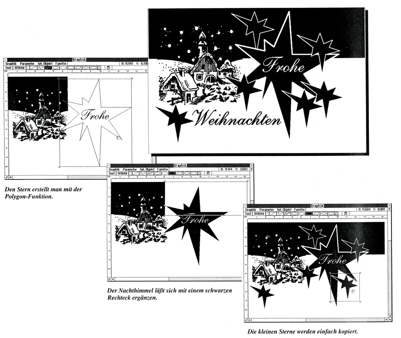 Der Grafik-Editor von Signum!3 führt in der „Signum-Welt“ eher ein Schattendasein. Völlig zu Unrecht, wie ich denke, denn es lassen sich auch mit ihm beachtliche Resultate erzielen. Am Beispiel zweier Weihnachtskarten möchte ich in diesem Workshop ein paar Möglichkeiten aufzeigen.