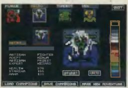 Sie beginnen das neue Abenteuer wahlweise mit Ihren alten Dungeon Master-Veteranen oder stellen sich eine neue Gruppe zusammen. Mit einem kleinen Malprogramm kann man bei Chaos strikes back sogar die Bildchen der vier Helden und deren Namen ändern. Das Hauptprogramm läuft auch ohne Dungeon Master, aber Sie sollten trotzdem dieses Spiel haben, um bei Chaos strikes back zurechtzukommen. Zum einen benötigt man das Dungeon Master-Handbuch, in dem Spielprinzip und Zaubersprüche erklärt sind, zum anderen ist der Schwierigkeitsgrad bei Chaos strikes back von Beginn an hoch. Die neuen Monster, Waffen und vor allem die diabolischen Puzzles sind für Dungeon Master-Könner gerade richtig, doch Einsteiger sind überfordert.