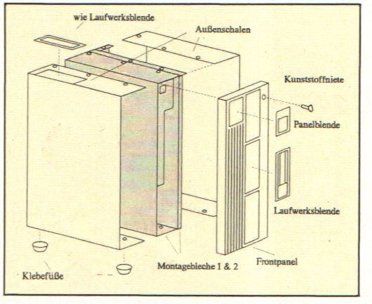 Der geräumige Tower bietet vier variable Einbauplätze für Floppies und Festplatten für 5,25-Zoll- und 3,5-Zoll-Hardware. Langlöcher verschiedener Abstände erlauben paßgenaues Anbringen aller Formate. Puristen werden bemäkeln, daß die Lager senkrecht eingebauter Festplattenlaufwerke unnötig ungleich belastet werden, was natürlich die Lebensdauer des Mediums verkürzt. Manche Platten müssen für senkrechten Betrieb sogar neu formatiert werden. Senkrechter Einbau ist jedoch auch im PC-Markt durchaus üblich und ein gutes Laufwerk macht das leicht drei bis vier Jahre mit.
