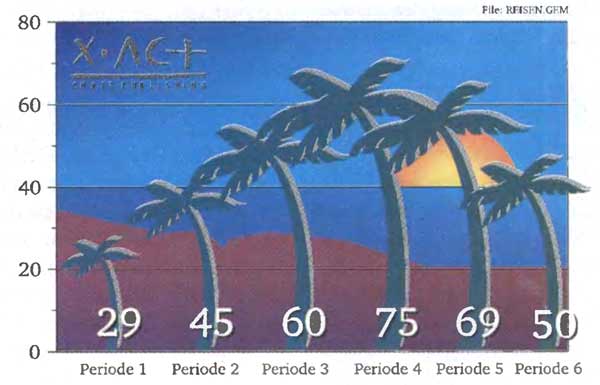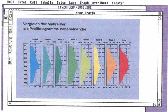 Eine Stilvorlage ist nichts anderes als ein von Xact erzeugtes Diagramm, das im Grafikeditor nach eigenen Wünschen bearbeitet und als Stilvorlage — also nicht als einfache Grafik — gesichert wurde. Um ein formgleiches Diagramm aus anderen Daten zu erhalten, wird nach dem Einlesen der Daten in den Tabelleneditor einfach der Menüpunkt »Nach Vorlage« angewählt und die Vorlagendatei angegeben — einfacher geht es nicht.