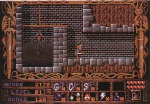 Nordische Götter lassen keinen ĂŒblen Scherz aus. So hat der schlimme Loki die Bewohner eines Wikingerdorfs kurzerhand in ein magisches GefĂ€ngnis gezaubert. Göttervorstand Odin gibt dem einzigen Dorfbewohner, der von dieser Aktion verschont bl ieb, einen kleinen Tip: Wenn er, Brian, sich seinen Weg durch 16 Levels bahne, könne er seine Landsleute befreien. Wacker macht sich der halbwĂŒchsige Nachwuchsheld, dessen Anblick das Herz jeder alten Dame zum Schmelzen bringt, ans Werk. Hinter der göttlichen Rahmenhandlung steckt ein nicht allzu hektisches Geschicklichkeitsspiel, bei dem es mehr aufs Timing als auf blitzartige Reaktionen ankommt. Das Spielprinzip ist sichtlich am Automaten »Super Wonderboy« angelehnt. Klein-Brian lĂ€uft durch wechselnde Landschaften, springt von Plattform zu Plattform und erlegt Lokis Monsterschar mit gutgezielten Schwert-KopfnĂŒssen. Das Aufsammeln von MĂŒnzen lohnt sich, denn in LĂ€den kann Brian praktische Extras wie z. B. Geschwindigkeits-Stiefel, Bomben und schneidigere Schwerter kaufen. Mit seiner niedlichen, schön gezeichneten Grafik und vielen versteckten Extras zĂ€hlt Viking Child zu den besseren Vertretern des Genres. Das Spielprinzip wurde geschickt abgekupfert und kann sich mit dem Vorbild Super Wonderboy durchaus messen, (hl)