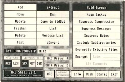 Da TTP-Programme nicht jedermanns Sache sind, finden Sie im Archiv »ARCSHELL« ein nützliches Freeware-Utility von Charles F. Johnson, das den Packer LHARC in eine GEM-Oberfläche einbindet und für mehr Komfort im Umgang mit Archiven sorgt. Alle Funktionen des Packers erreichen Sie bequem über entsprechende Buttons. Neben der englischen Originaldokumentation ist auch eine deutsche Kurzanleitung im Archiv enthalten.