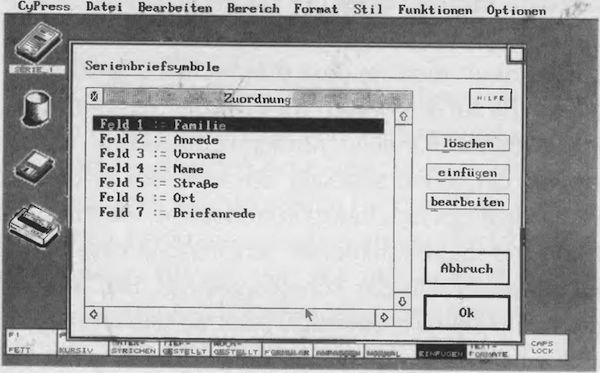 Bild 5 zeigt, wie der Kopf des Serienbriefes anschließend aussehen könnte. Wenn Sie den Serienbrief drucken wollen, vergessen Sie nicht, im Druckmenü den Punkt »Serienbrief« anzuklicken. Sie verwenden entweder alle Adressensätze oder wählen jeweils einen einzelnen aus. Das ist in der Dialogbox »Serienbriefe« (vgl. Bild 2) möglich unter dem Dialog »Exportdatei«. Nach einem Klick auf die Nummer des Datensatzes zeigt CyPress den entsprechende Datensatz. Durch Anklicken der Pfeile wählt man den vorherigen oder den folgenden Datensatz aus und fertig ist der Serienbrief-Zauber. (wk)