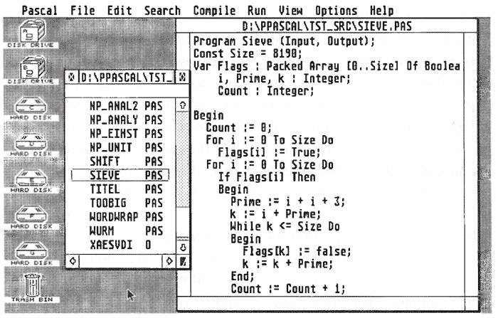 Auch wird man bei neuen GEM-Versionen (z.B. MultiTOS) damit rechnen müssen, daß ein Update nötig wird. Allerdings kommen Sie dadurch auch in den Genuß von bis zu 100 offenen Fenstern. Diese Tatsache macht sich Pure Pascal natürlich auch zu Nutze.