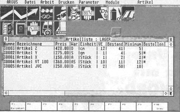 Die neueste Update-Version von Argus Professional nennt sich Argus Lager und ist ab sofort erhältlich. Die neue Version weist neben einigen Verbesserungen als wichtigstes Merkmal eine integrierte Lagerverwaltung auf. Sie ist für 999 Mark, beziehungsweise 150 Mark Updategebühr, erhältlich.